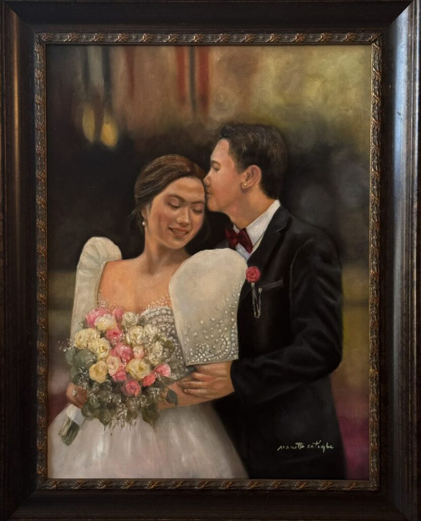 Once completed and fully dried, your portrait is beautifully packaged and delivered to you (or gifted to the couple). The moment you unveil your painting becomes a celebration of your love story all over again.